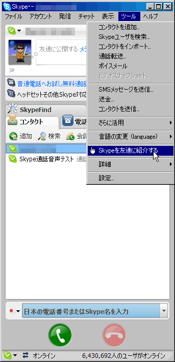 特に大きなトラブルも無くSkypeが開通したワケですが、このままだと「一人すかいぷ」なので友人知人に「すかいぷでトゥギャザーしようぜ!!」ってな具合のお知らせをメールことになるんですが・・・。
